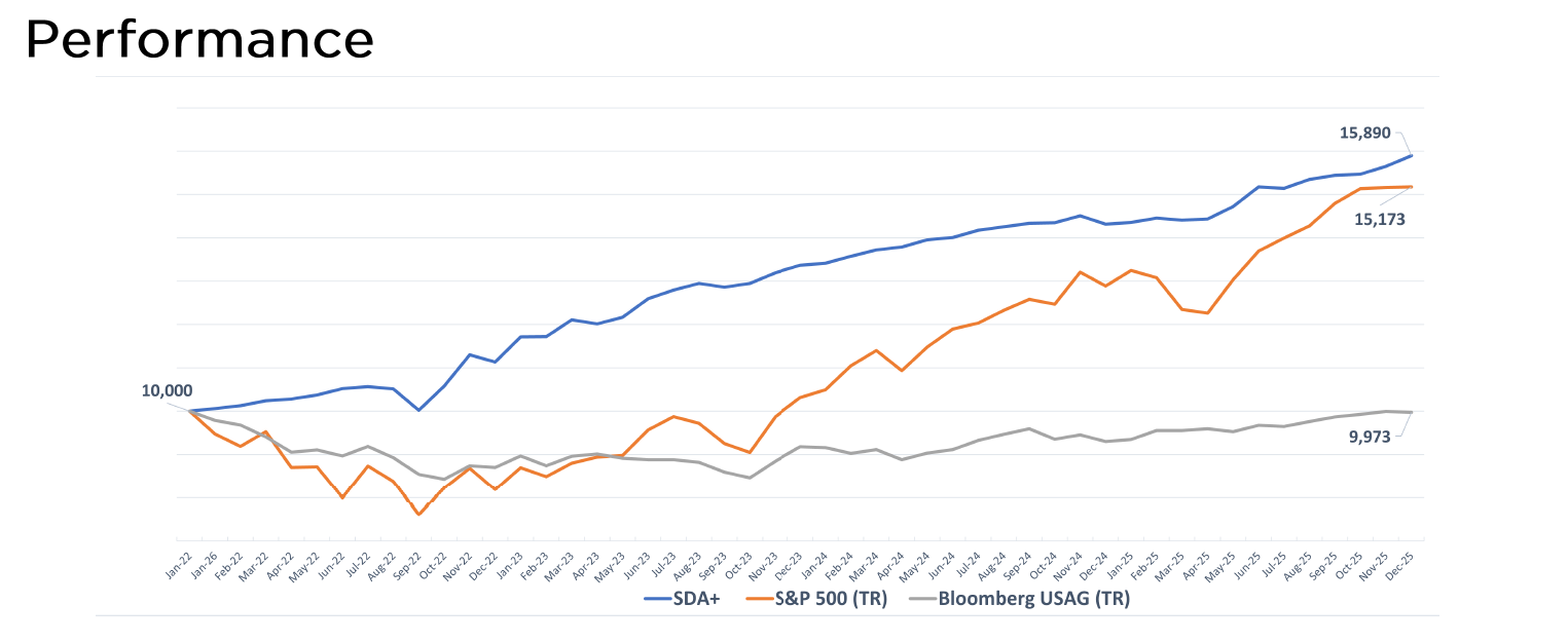 SDA+ is a systematic two-stage process powered by two complementary algorithms—long-equity selection and short-volatility overlay—working together through a consistent, rules-based framework to maximize the probability of achieving its three stated objectives.